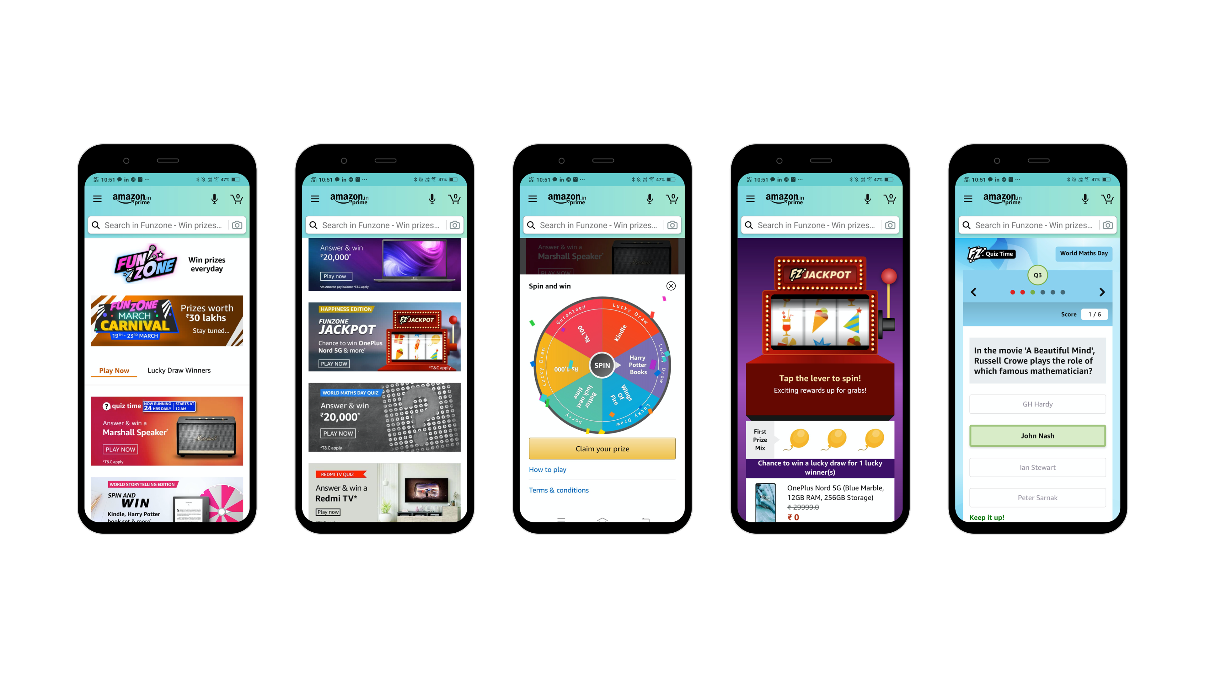 Our gamification initiative aimed to create a space within the Amazon India shopping app for engaging customers while supporting Amazon’s inventory and sales metrics. These games, hosted under the Funzone platform, included formats like _Spin and Win_, quizzes, and skill-based riddles. By attracting over 15.4 million unique users during the festive season, Funzone demonstrated the high impact gamification could have on engagement, brand loyalty, and business outcomes.