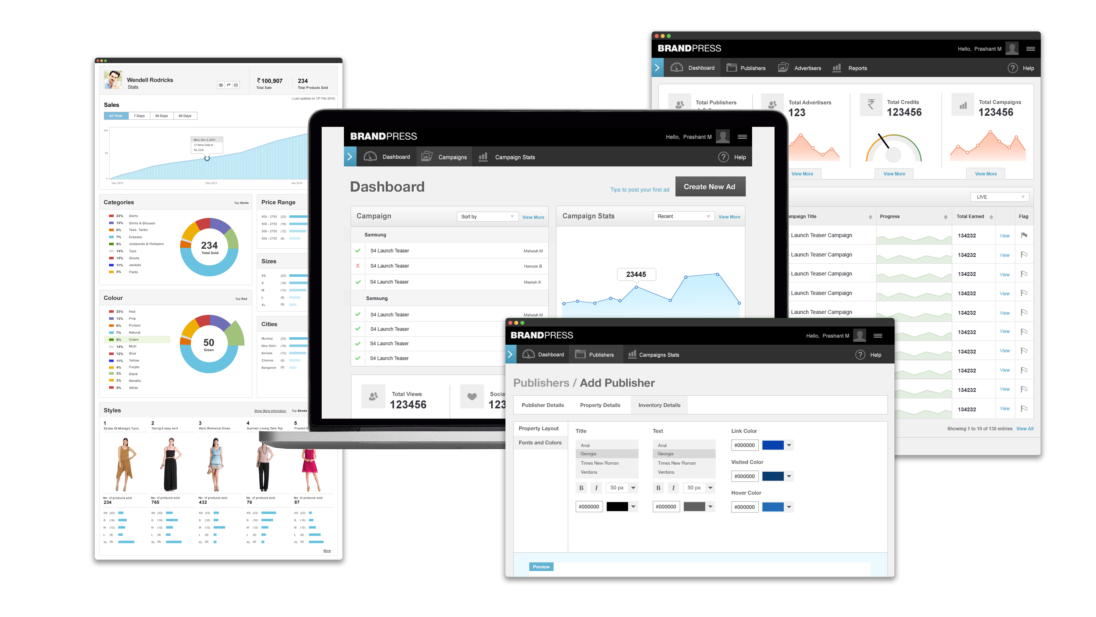 In this project, I worked on two unique B2B tools, each designed to streamline processes for different types of users. The first was Brand Press, a self-serve platform for content creators to manage and distribute branded articles across multiple publisher websites. The second was a Sales Dashboard for designers on Stylista.com, a platform for selling exclusive fashion apparel. Both tools aimed to simplify complex tasks, enhance user experience, and create a seamless workflow for content creators and fashion designers alike.