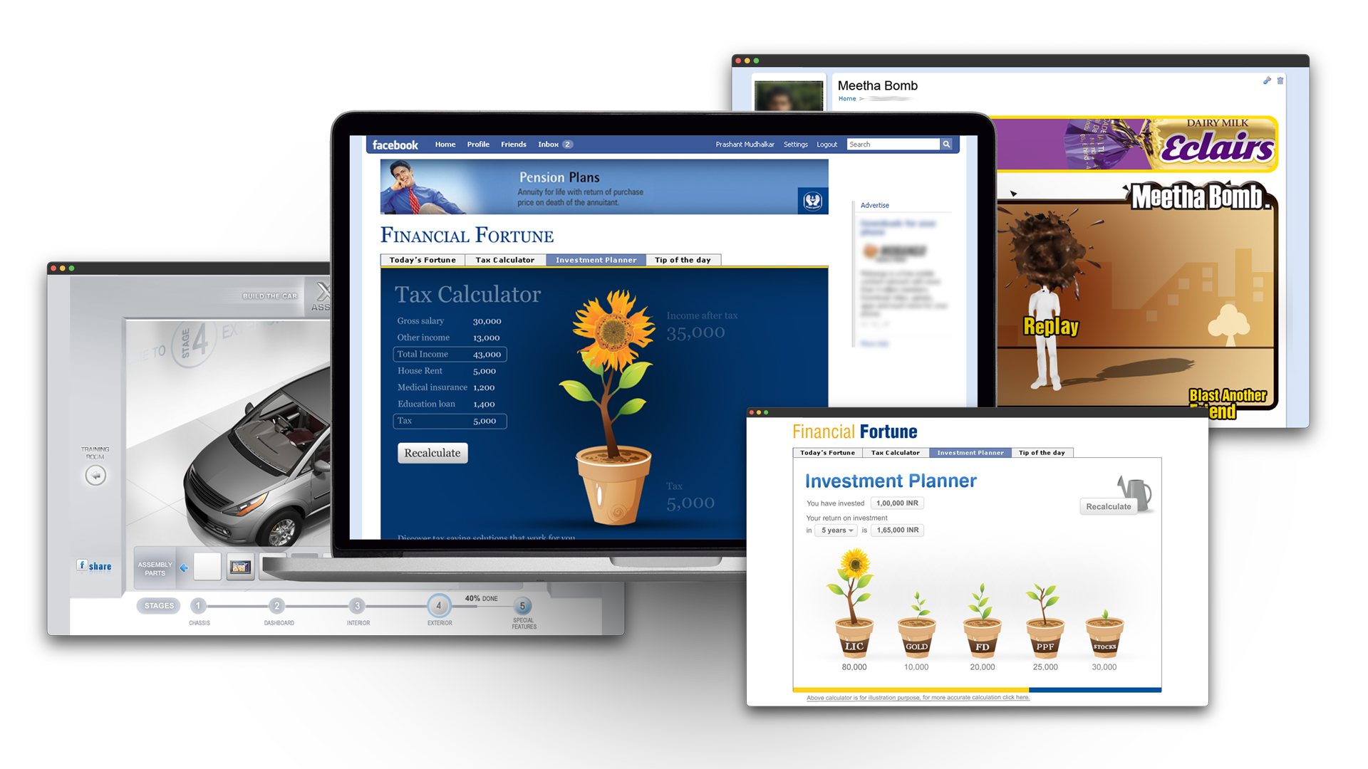 These projects represent my work in the early, experimental phase of social media applications in India. By combining traditional advertising techniques with interactive digital design, we were able to create applications that engaged users, spread brand messages, and set new standards for social media engagement. These projects reflect my ability to work in ambiguous, evolving spaces and help define new ways for brands to connect with their audiences.
